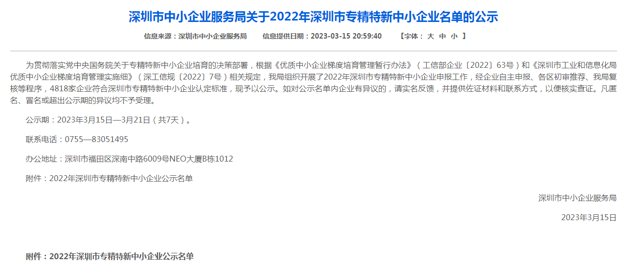 2023-08-172022年3月15日,深圳市中小企業(yè)服務局公布了2022年深圳市“專精特新”中小企業(yè)名單,深圳市琉璃光生物科技有限公司名列榜單,榮獲“深圳市專精特新中小企業(yè)”稱號,成為發(fā)展道路上新的里程碑。
